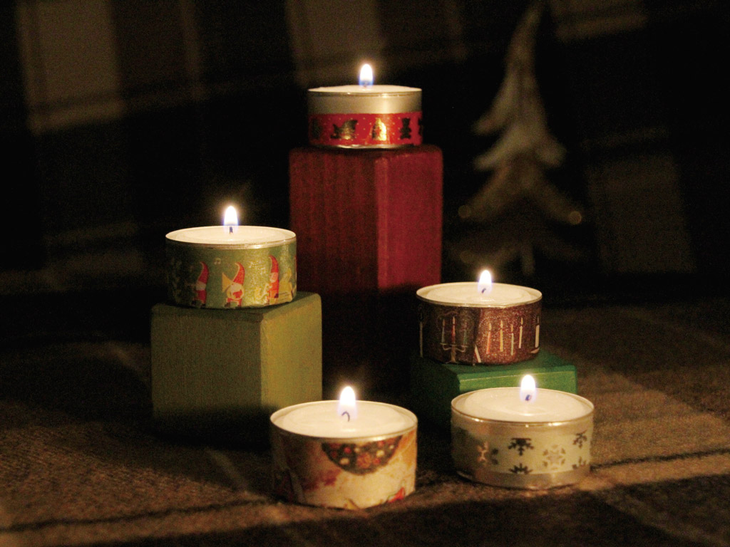 - Külmal ja pimedal ajal toob küünal hubase tunde. Võimalik on osta juba valmis dekoreeritud ümbrisega küünlaid, aga kui soovid midagi erilisemat, siis on washi teip hea lahendus. Vali sobiva kuju ja suurusega klaasist tops, kuhu sisse saaks teeküünla panna ja mõned meelepärased washi teibid ning lase loovus valla! Kiiresti ja mugavalt saab väga omanäolise küünlaümbrise. Veelgi lihtsam lahendus on tõmmata teibiga ümber teeküünla ring!