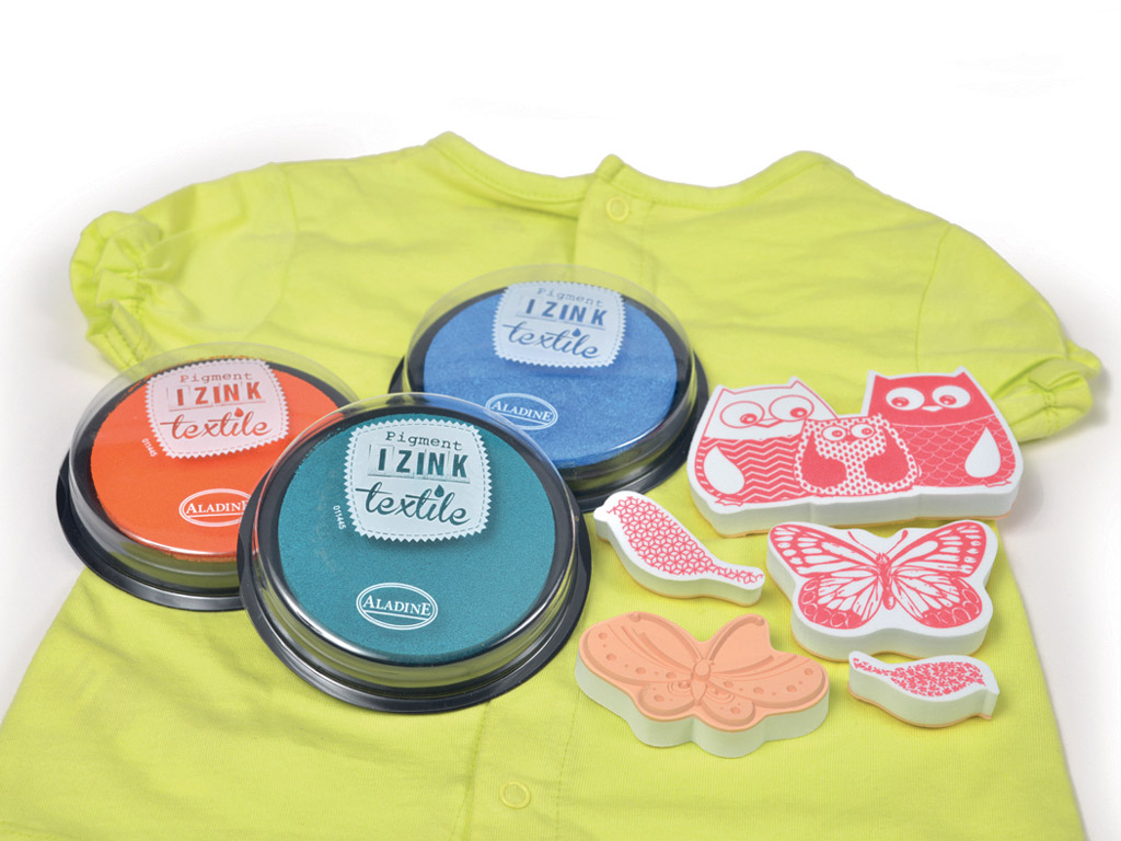For textile crafts we offer new exciting products by Aladine – stamps, ink pads and stickers fixed with ironing.