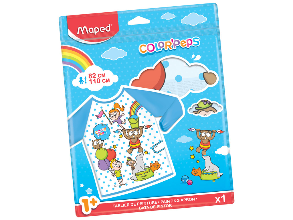 Maped Color’Peps Early Age apron is indispensable for kids first creative activities! It is easy to put on and to close with hook and loop fastening in the back. Maped Color’Peps Early Age apron has long, elasticated sleeves and it’s from soft and waterproof material that is easily washable. Suitable for children from 18 months to 5 years old (from 82 to 110 cm).