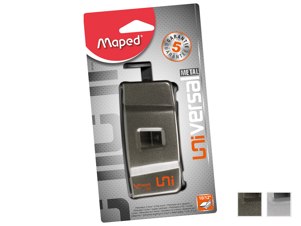 With Universal, Maped presents a range of reliable and efficient office accessories demonstrating practical and aesthetic sense for a trusted partnership. Metal puncher with easy emptying of confetti from the front.