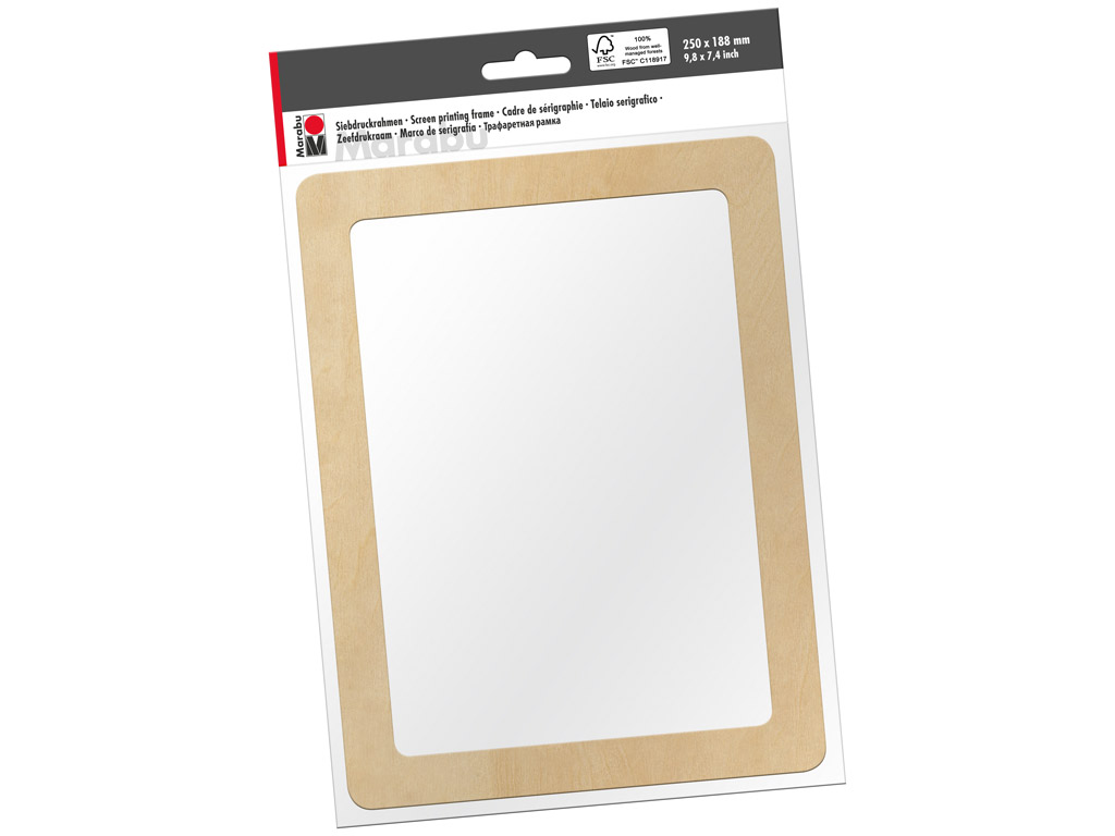 Marabu wooden screen printing frame is ideally suited for textile printing with water-based printing inks. The 51T screen mesh fabric is ideal for printing on light and dark fabrics.
