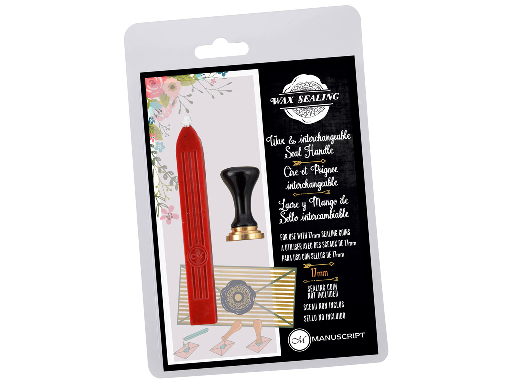 The sealing handle is a must for creating wax seals using Manuscript decorative stamps. The handle is interchangeable and will allow you to swap and change designs as often as you like! For use with Manuscript 17mm sealing coins only. Set comes complete with wick wax.