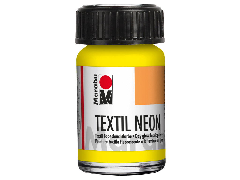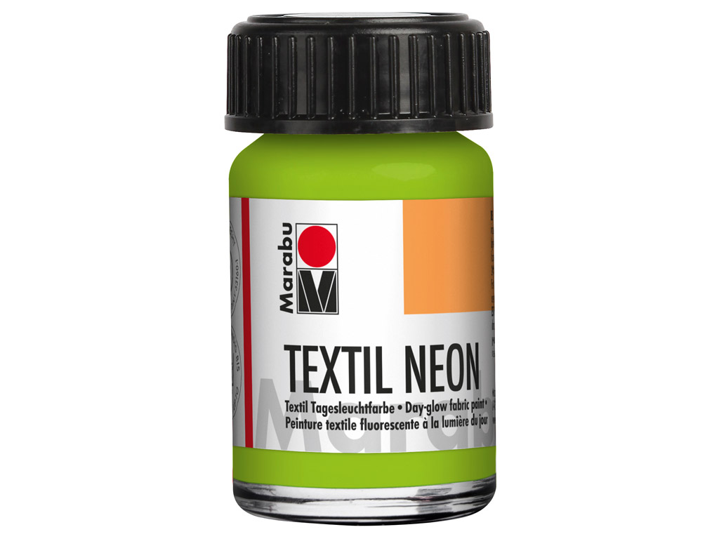 Marabu Textil Neon, the fluorescent, water-based, day-glow paint is impressive with its soft feel and intense luminosity. It is odourless, saliva-resistant, and glows in UV black light. For light-coloured fabrics free of finishes and fabric conditioners (max. 20% synthetic fibre). After drying, fix in the oven (8 minutes/150°C) or iron without steam for 3 minutes. After fixing, the fabric is washable to 40°C.