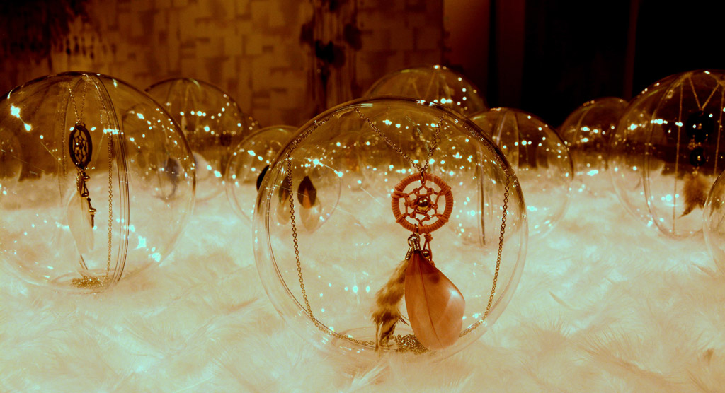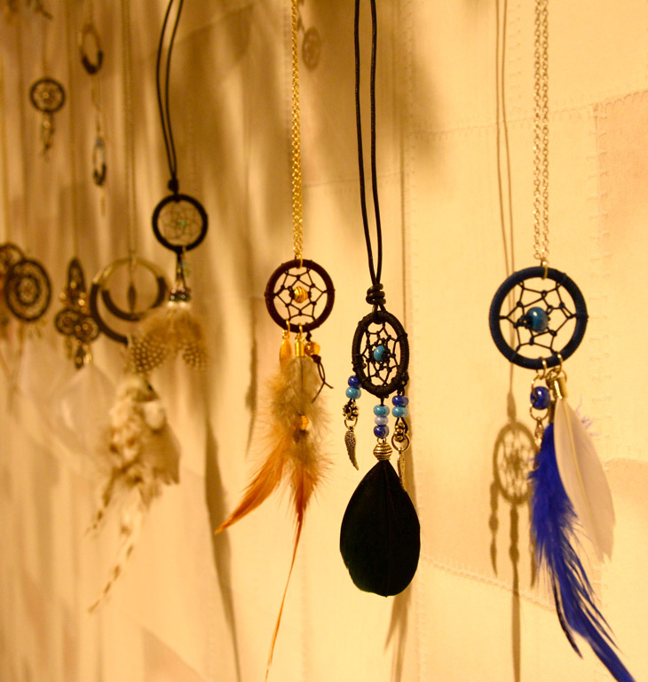 Suureks uudiseks ehtemaailmas on ka erinevad unenäopüüdjad kaelakee ja kõrvarõngastena. Taaskord kombineeritakse nende valmistamisel maalähedast linast või takunööri, sulgi ja päikesekäes mängivaid Swarovski kristalle. Tundub, et kristallisära ei saa kunagi liiga palju. Kombineerituna erinevate materjalidega on tulemus alati üllatav!
