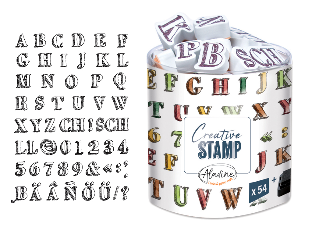 Tempel Aladine Stampo Scrap 54tk Letter Sketch + templipadi must