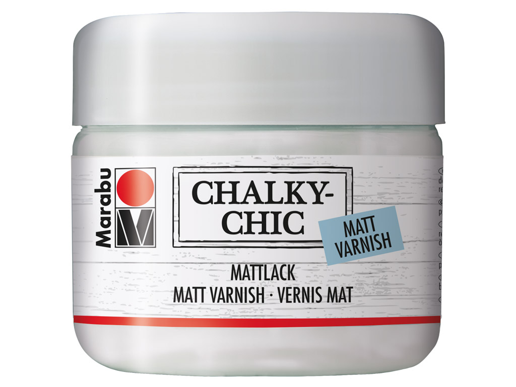 „Chalky-Chic“ kreidiniais dažais nudažyti lauke – sode, terasoje arba balkone naudojami daiktai turi būti padengti vandens pagrindu pagamintu „Chalky-Chic“ matiniu laku. Jis suteikia apsaugą nuo nepalankių oro sąlygų, saulės šviesos ir įbrėžimų. Minkštas matinis lakas paviršiams taip pat suteikia aksominę minkštą išvaizdą.