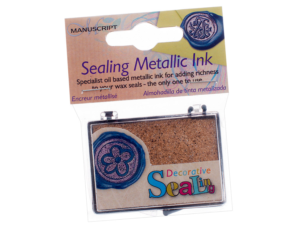 Suteikite blizgesio metalinės spalvos antspaudų dažais… Kokybiški alyvos pagrindu pagaminti metalo spalvos dažai vaškiniams antspaudams. Tiesiog įspauskite antspaudą į pagalvėlę ir tada į ištirpdytą vašką.
