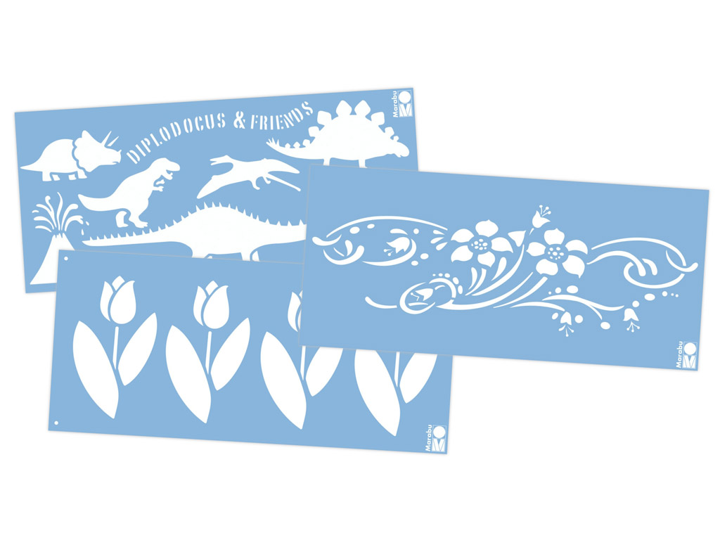 Suteikite sienoms, baldams ir tekstilės dirbiniams naują išvaizdą – aplinką lengvai atnaujinsite naudodami „Marabu“ trafaretus. „Marabu“ studijos trafaretų dizainas leidžia sukurti individualų stilių panaudojant juos apverstus, veidrodiniu būdu ar eile. „Marabu“ siūlo įvairioms progoms tinkantį platų trafaretų asortimentą. Sunkus lazeriu išpjautas poliesteris ir itin plona medžiaga užtikrina puikius rezultatus su ryškiai išsiskiriamomis linijomis. Patvarius trafaretus galima naudoti įvairioms reikmėms, juos lengva valyti. Sudėtyje nėra PVC.