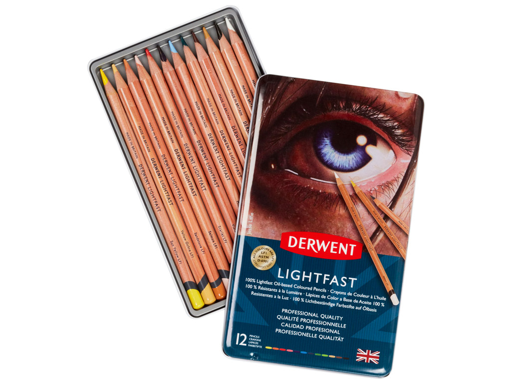 Ryškių spalvų ir visiškai atsparūs blukimui aliejiniai spalvoti pieštukai „Derwent Lightfast“. Naujausių technologijų pagrindu pagaminta šerdelė yra atspari blukimui ir užtikrina, kad meno kūriniai muziejaus sąlygomis neišbluks iki 100 metų. Lygi aliejinė šerdelė sukuria turtingas ir gyvybingas spalvas, kurias galima maišyti tarpusavyje ir sukurti į tapytą paveikslą panašius efektus, o kietas galiukas idealiai tinka detaliems piešiniams. Aliejaus pagrindu pagaminta šerdelė suteikia nuostabias maišymo ir sluoksniavimo galimybes. Kaip ir aliejinius dažus, galima maišyti ir skiesti tirpiklio pagrindu pagaminta priemone; su aliejinėmis terpėmis maišomas pieštukas turi aliejiniams dažams būdingų savybių.