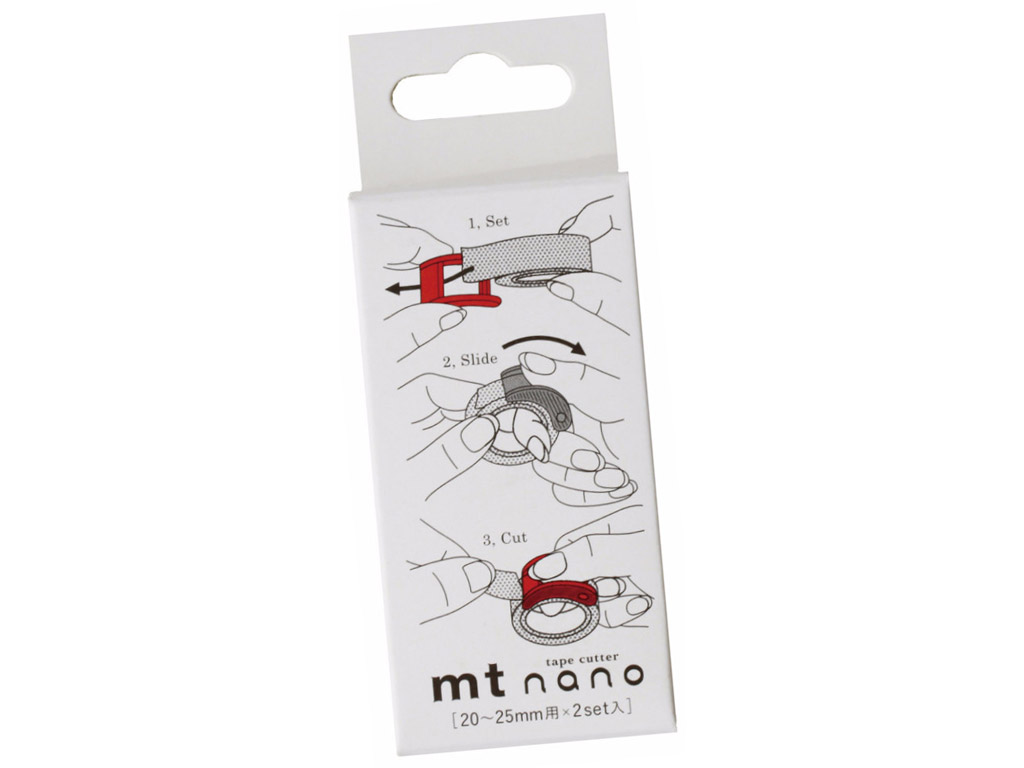Multifunkcės juostelės pjoviklis, su kuriuo „mt“ washi juostelę naudoti bus dar smagiau! Pastumkite pjoviklį „nano“ taip, kad jis sutaptų su juostele ir nustatykite vietoje, kur norite atpjauti. „mt“ juostelės pjoviklis „nano“ yra labai patogus, jeigu „washi“ juosteles norite naudoti vardų kortelėms ir lipdukams, taip pat gali būti naudojamas, kaip lipnios juostelės dėklas.