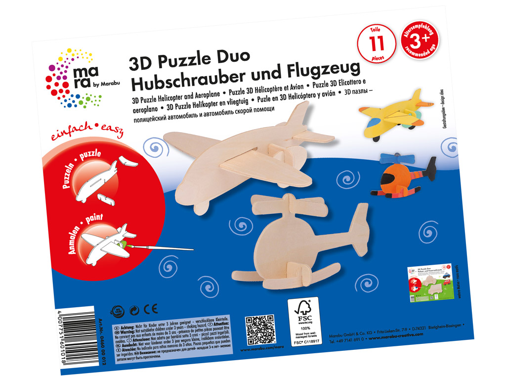 3D puzzle puidust Mara Helicopter&Aeroplane 11 osa |
