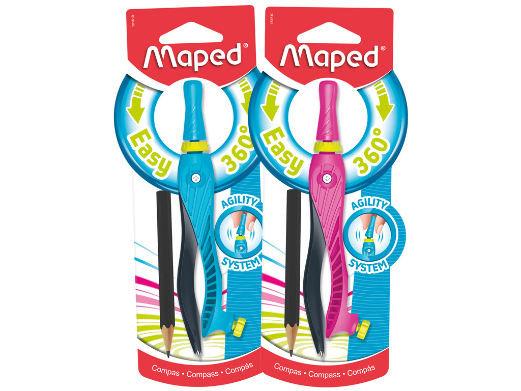 Maped Kid`z 360° – cirkulis, kas griežas! Tam ir elastīga sistēma, kas nodrošina ātru un vienkāršu rasējumu veidošanu ar vienu kustību. Maped Kid`z 360° ir ideāli piemērots iesācējiem – nodrošina bērniem aizrautīgu nodarbi!