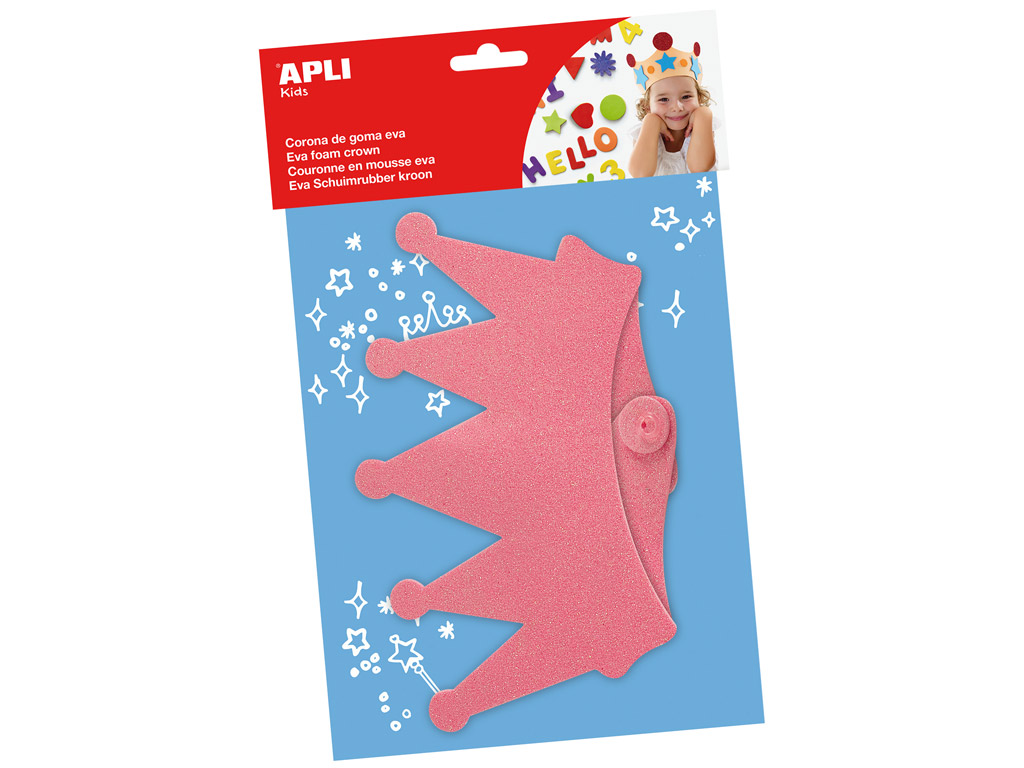 Putugumijas loksnes kronis ar rozā spīdumiem. Aizmugurē ir gumija, ar kā palīdzību var pielāgot kroņa izmēru.