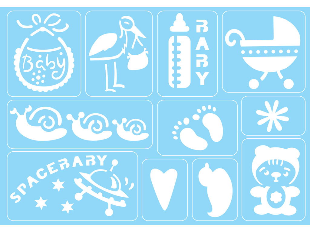 Šablons Marabu pašlīmējošs A5 Welcome Baby+švamme
