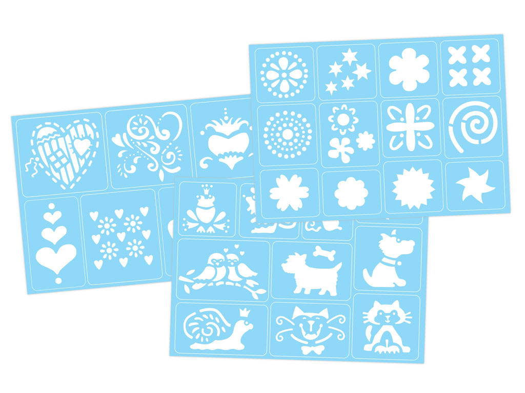 Pašlīmējošais šablons ir piemērots vienkāršu materiālu un virsmu ātrai dekorēšanai. Pašlīmējošo šablonu var lieliski kombinēt ar akrila, tekstila un porcelāna krāsām un tas ir piemērots lietošanai uz gandrīz visiem materiāliem: papīra, stikla, porcelāna, tekstila, metāla, koka, māla u.c. Pēc lietošanas tas ir viegli notīrāms un atkārtoti izmantojams. Katrs pašlīmējošais šablons ir komplektēts ar kvalitatīvu sūkli, kas izgatavots no sīkporu putām un ir lieliski piemērots mazu laukumu un sīku detaļu aizpildīšanai ar krāsu.