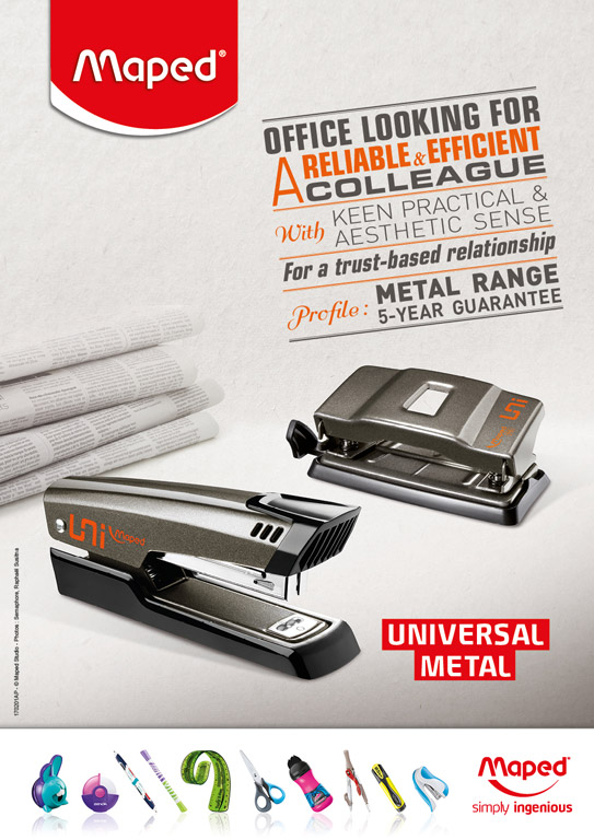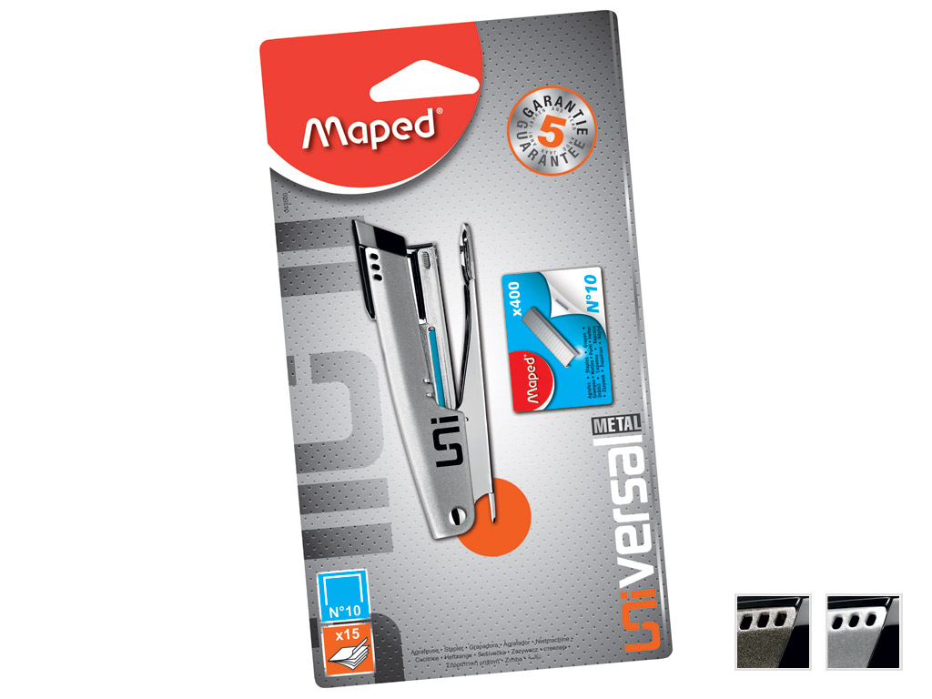 Ar Universal sēriju Maped nodrošina plašu uzticamu un efektīvu biroja piederumu izvēli, izceļot praktisku un estētisku pieeju! Universālais metāla skavotājs ir kompakts un aprīkots ar atskavotāju.