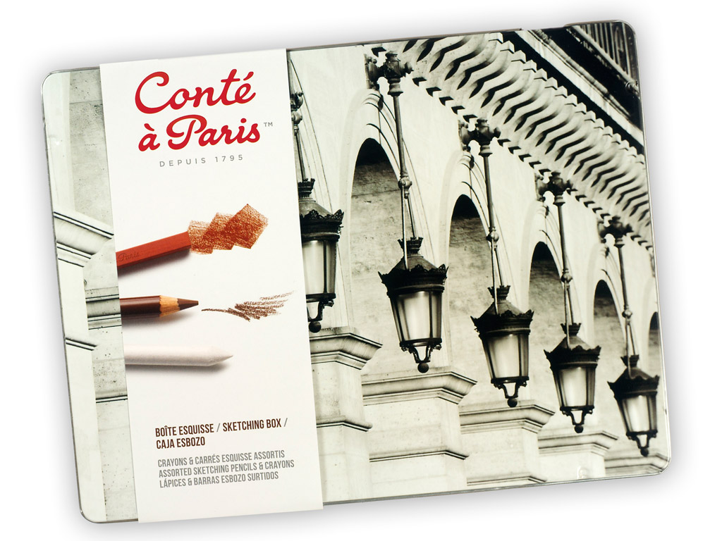 Eskiisipliiatsite komplekt Conte a Paris 6pliiatsit+12kriiti metallkarbis |