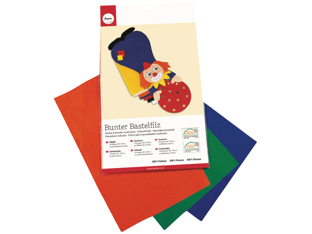 Värviline vilt pakub lõputult loomingulisi võimalusi kaunistamiseks, väiksemaks õmblemistööks või modelleerimiseks. Pakis on 10 eri värvi lehte (20x30cm) paksusega 0,8 kuni 1 mm. Rayheri käsitöövilt on 100% viskoosist.