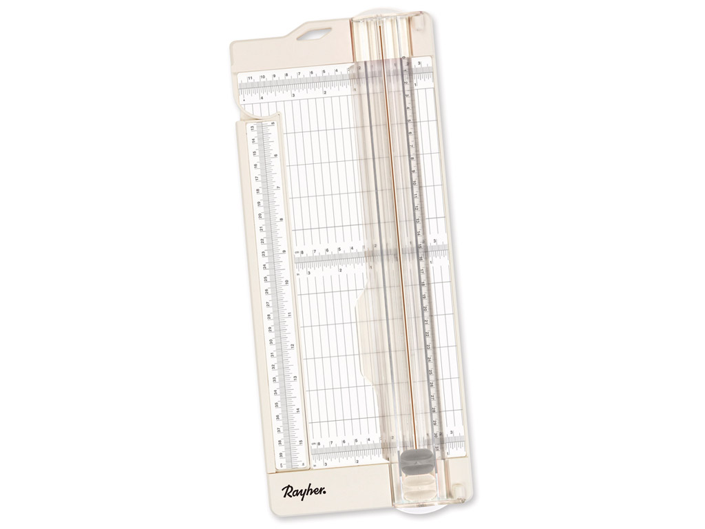 Paberitrimmer ja voltija läbipaistva juhikuga. Saab lõigata korraga kuni 5 lehte paberit (80g/m²), lõikepikkus 30,5cm. Kokkumurtav joonlaud ja mõõteskaala nii sentimeetrites (mm) kui tollides (¼ tolli).
