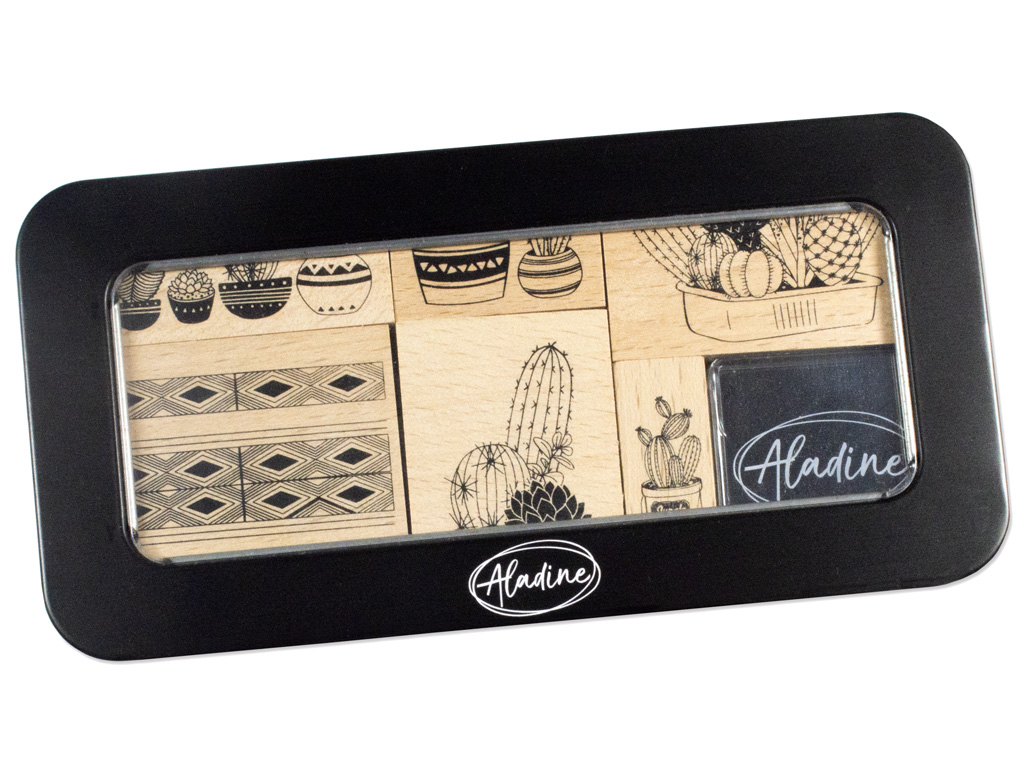 Templite komplekt kaunis metallkarbis. Vastupidavad ja mugavad puidust käepidemega Aladine kummitemplid paberpindade kaunistamiseks.