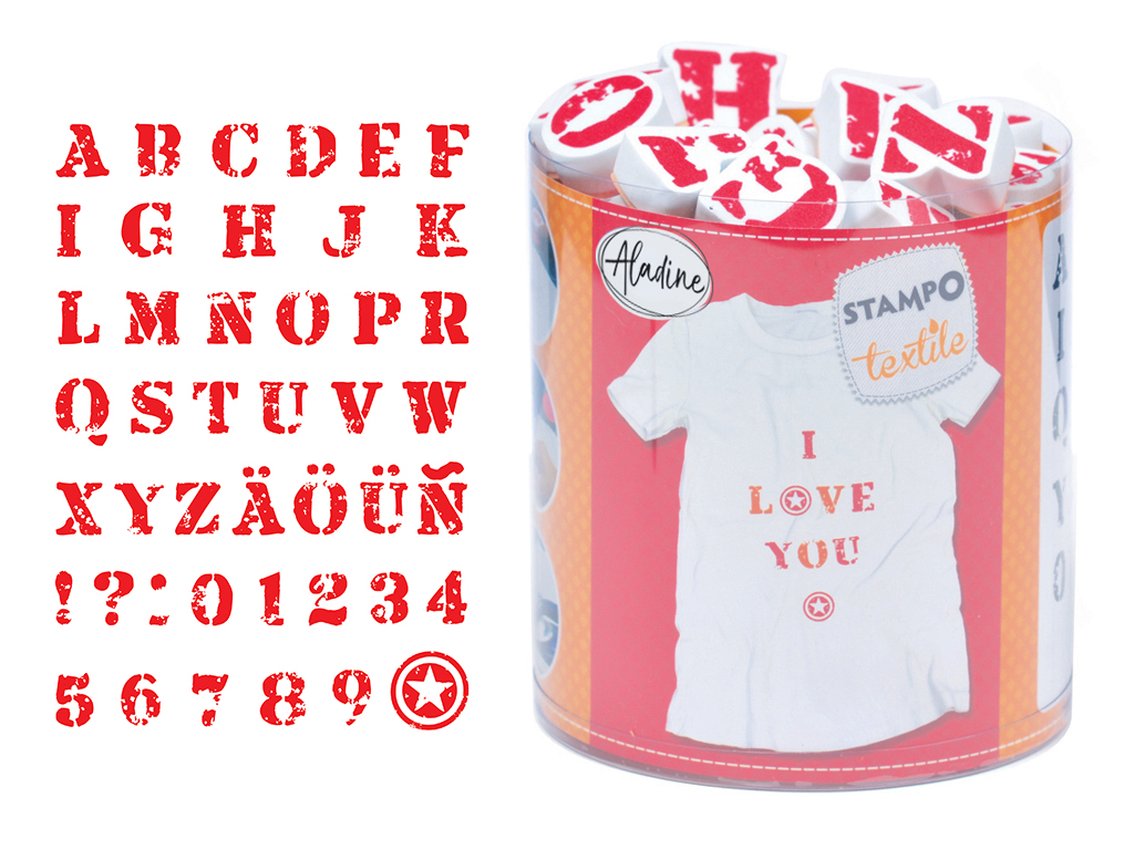 Tempel Aladine Stampo Textile 45tk Alphabet + templipadi must