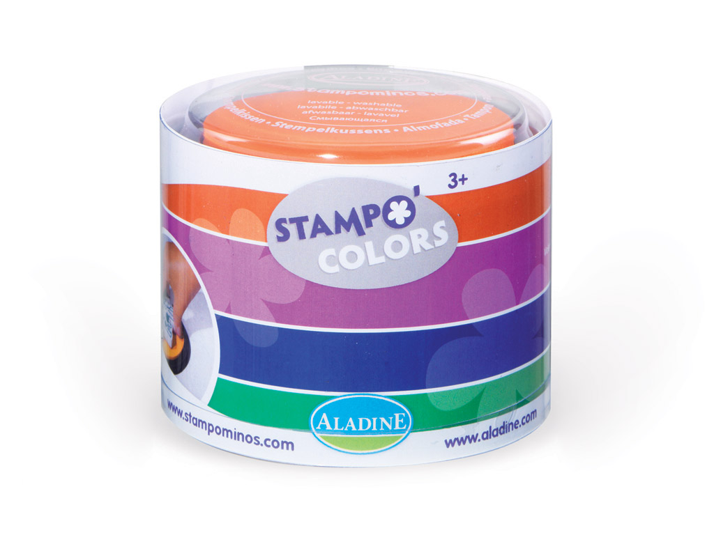 Erksate värvidega suurte templipatjade komplekt lastele. Lihtne ja mugav kasutada koos Aladine Stampo Minos templitega. Tint on lihtsalt veega mahapestav. Sobib kasutamiseks erinevateks paberitöödeks.