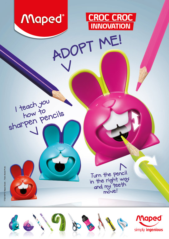 Croc Croc Innovation – jänes, kes armastab pliiatseid! Vaata seda jänesekujulist pliiatsiteritajat, et õppida teritamist: selle hambad liiguvad, kui pliiatsit õiges suunas pöörata. Croc Croc Innovation… lihtsalt liiga armas ja naljakas, et sõnadesse panna.